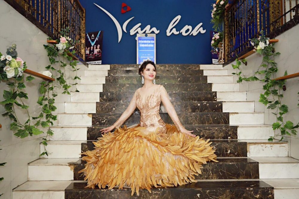 Á hậu Thùy Lê lộng lẫy trong chiếc váy màu vàng lông vũ gợi cảm thu hút mọi ánh nhìn