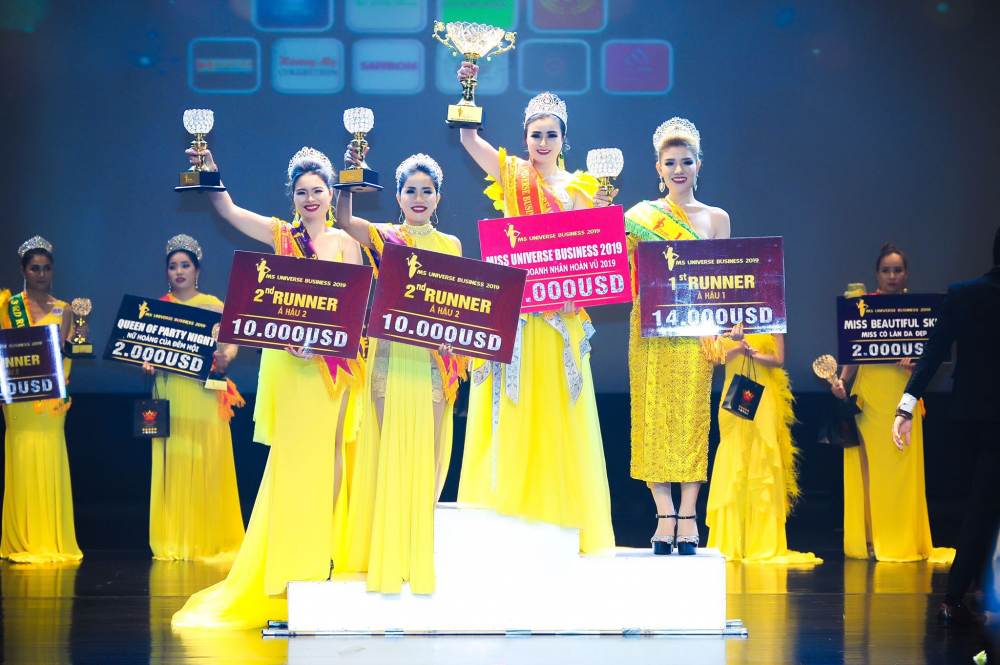 Top 4 của cuộc thi Hoa hậu Doanh Nhân Hoàn Vũ 2019 với những gương mặt xuất sắc như: Trần Thị Trúc Phương, Nguyễn Thị Diệu Thúy, Nguyễn Trúc Phương và Lê Thị Thùy.