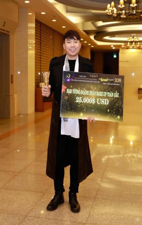 Chuyên gia trang điểm Tony Tường đạt giải Nam vương Tài năng tại cuộc thi Hoa hậu & Nam vương Doanh nhân người Việt Toàn cầu 2019.