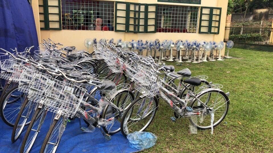 Ông Nguyễn Kế Nghiệp – Ủy viên Ban biên tập báo Thời báo Làng nghề Việt cùng BTC trao xe đạp, quạt điện cho các gia đình nghèo có hoàn cảnh khó khăn.