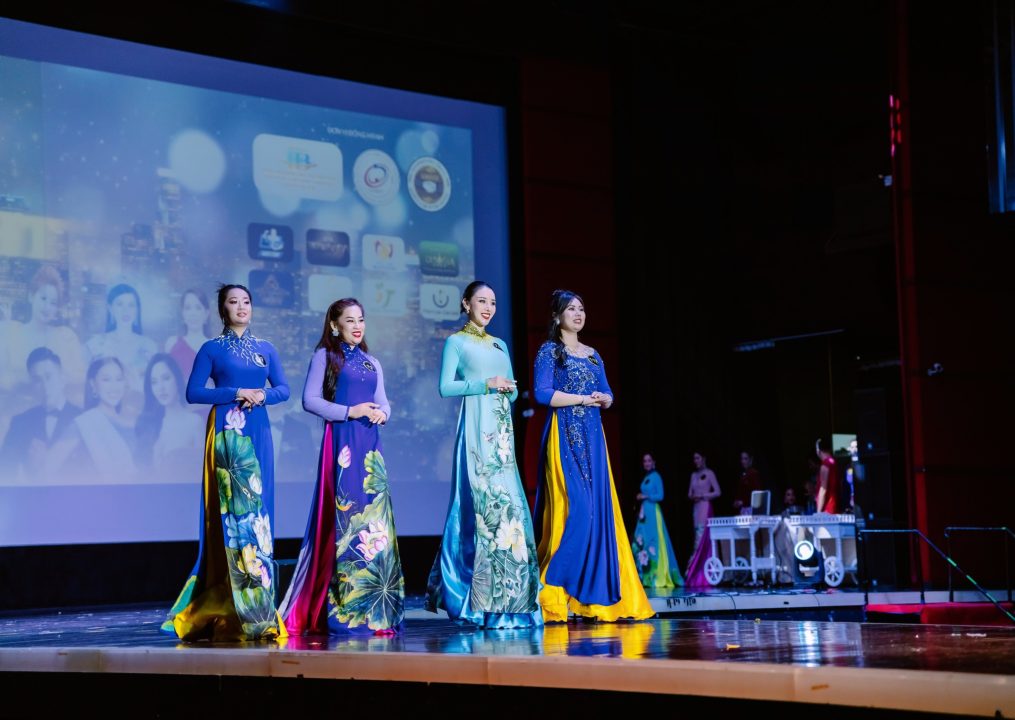 Từ phải qua: Trưởng BGK Nguyễn Rô, tân Á hậu Bảo Trâm, hoa hậu siêu quốc gia Mutya Johanna Datul và Á hậu Tha Đặng